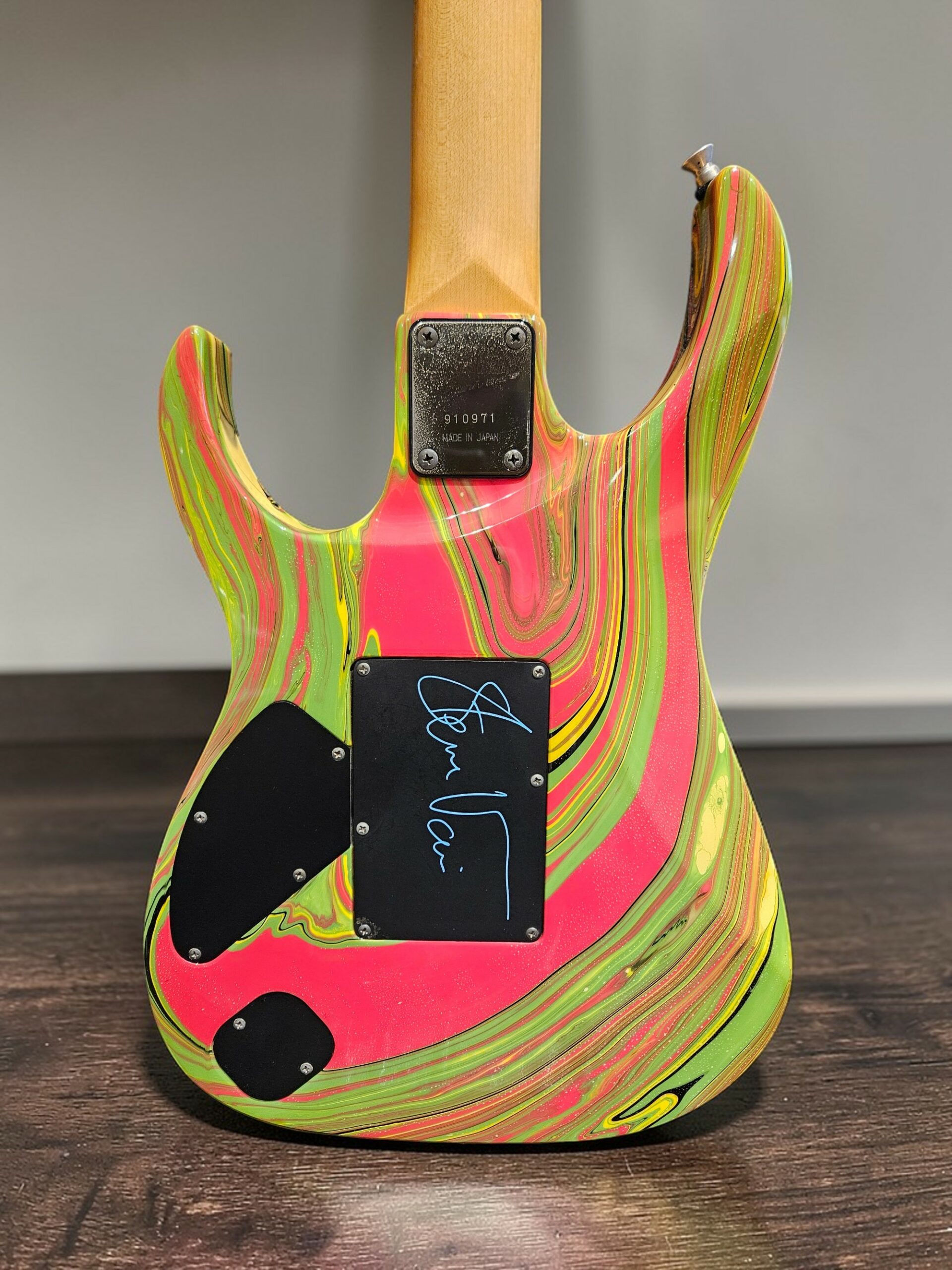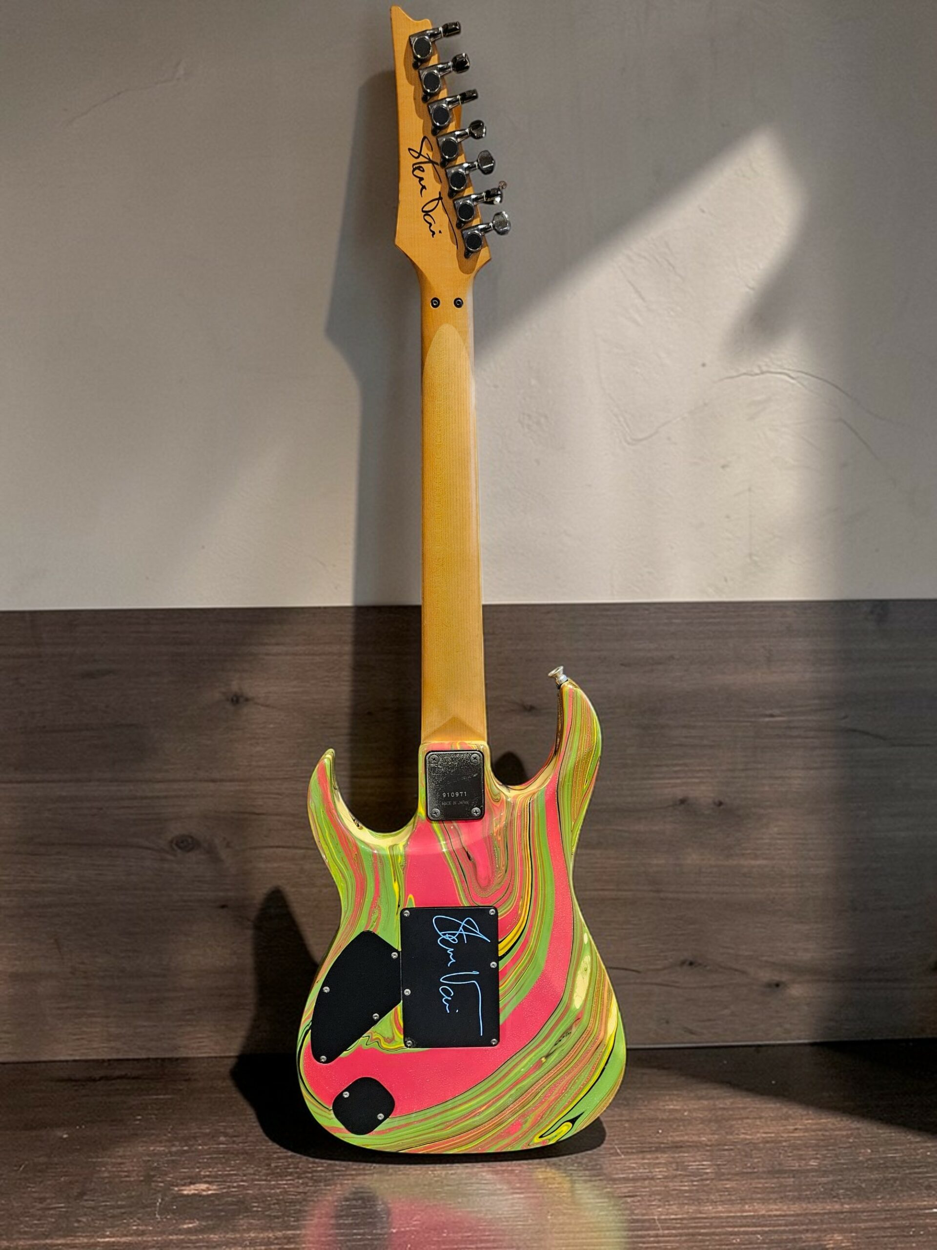 Tout d’origine — aucune pièce modifiée ni remplacée, signée par Steve Vai